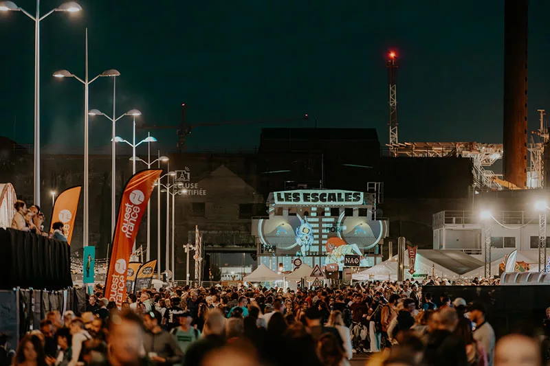 Le festival des Escales diffuse depuis 1992 le meilleur des musiques actuelles locales ou plus lointaines sur l’Île du Petit Maroc à Saint-Nazaire. Dans un cadre singulier et onirique, entre Loire, océan et chantiers navals, cet évènement éminemment populaire n’a pas attendu Fairly Score pour s’engager dans une politique RSE ambitieuse. Mais depuis peu l’équipe de ce festival associatif à but non lucratif, utilise la solution pour préciser ses impacts et a pu récemment publier un score qui révèle autant d’actions concrètes que d’envies d’améliorations constantes. C’est précisément Angèle qui pilote ces démarches et nous en parle ici.